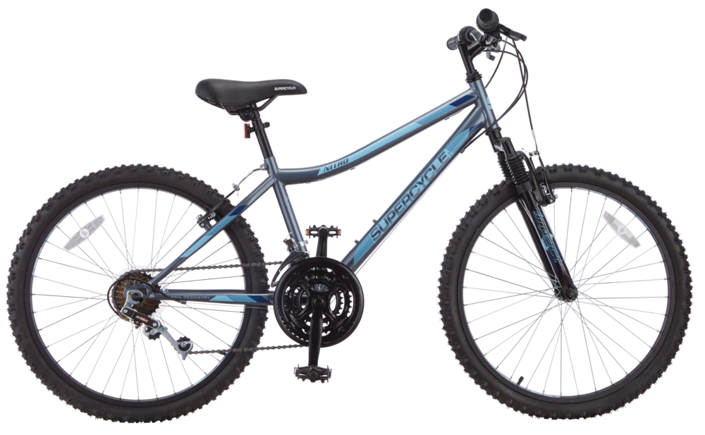 - Supercycle Nitro XT Youth Hardtail Mountain Bike with a high-tensile steel frame