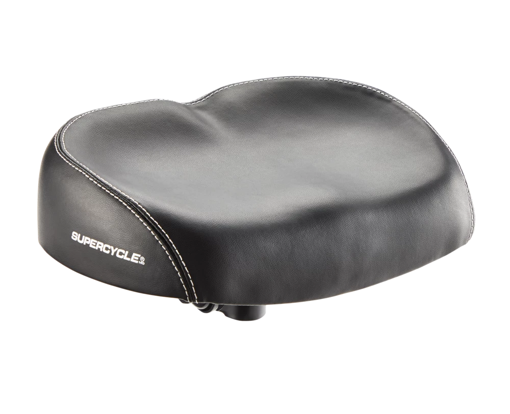 - Supercycle No-Pressure Bike Saddle features an ergonomic design which relieves pressure points and reduces numbness