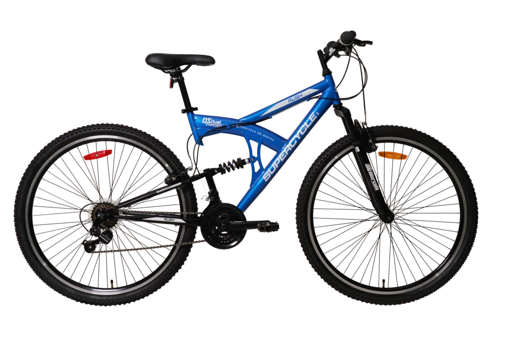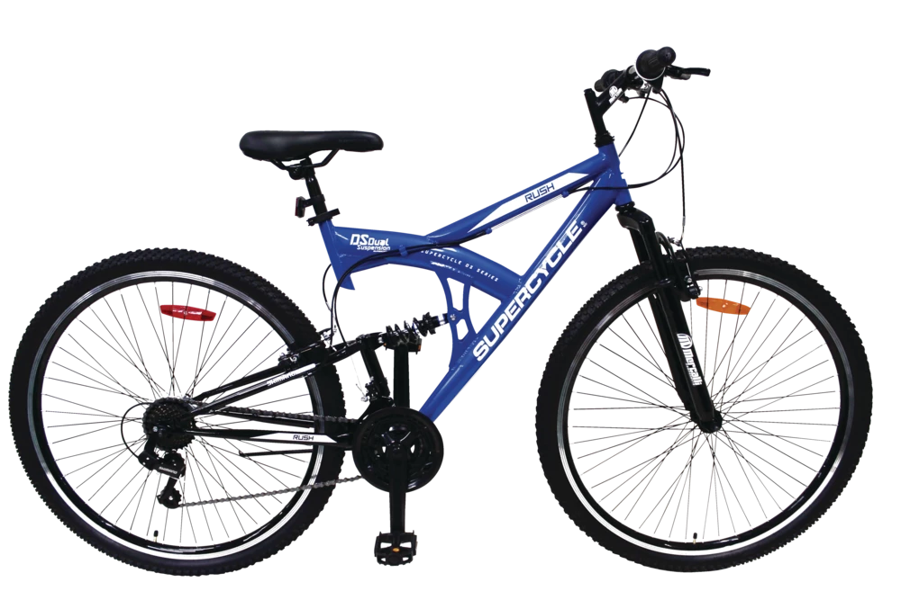 - Supercycle Rush Adult Bike features a 21-speed grip shifting system
